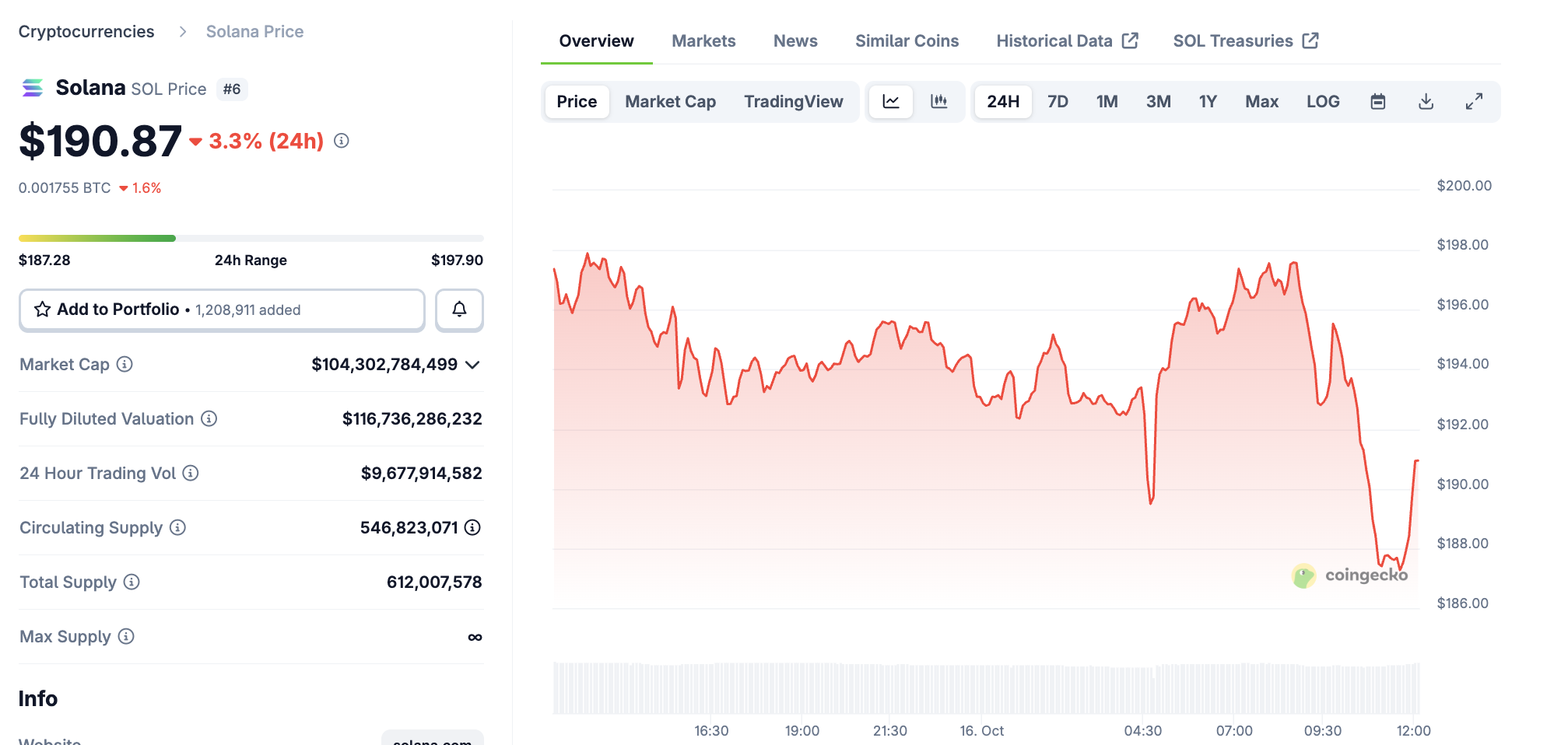 尽管长期影响深远,但当前市场反应却呈跌势。SOL本周本已走低,即便在消息公布后仍延续下跌趋势: