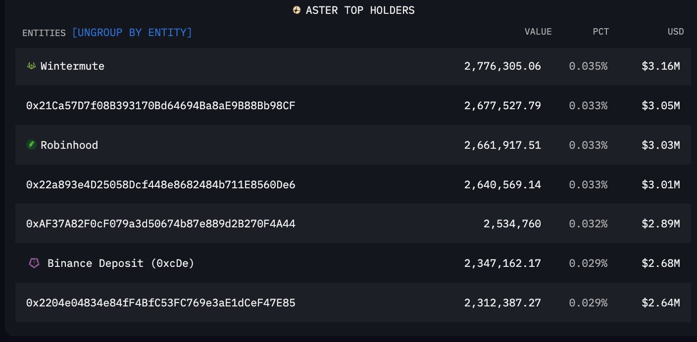 Aster在永续合约DEX领域正重拾涨势,其24小时交易量已超越Lightchain。此前Wintermute在激进抛售后悄然吸纳了数百万枚代币。