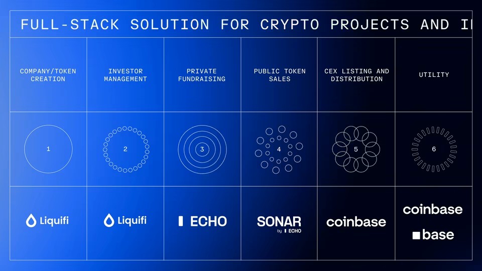 Echo 与我们近期收购的 Liquifi 互补——Liquifi 为早期团队简化代币发行与持有人管理。Liquifi 强化了我们在创业初期的支援,而 Echo 则将这份支援延伸到募资阶段。结合我们在 交易所上架、託管、质押、交易与融资 的既有优势,我们现已能在整个生命週期支援代币发行方与投资人——从发行到募资,再到二级市场。