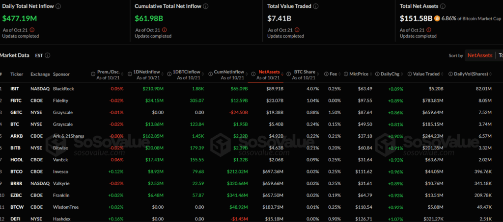 比特币ETF单日流入4.77亿美元,以太坊ETF新增1.41亿美元投资,贝莱德和富达领跑强劲交易行情