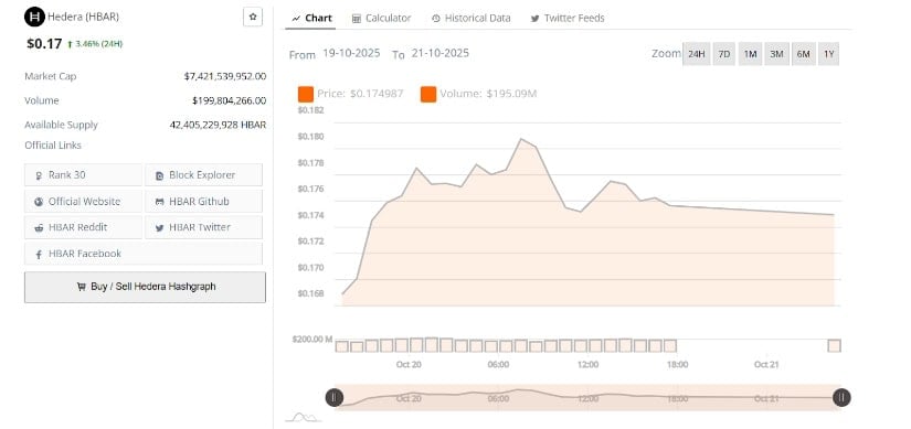 短期数据显示,10月20日全天该代币持续构筑更高低点。分析师预计若价格维持在0.175美元上方,可能上探0.18-0.185美元区间。当前74.2亿美元市值背景下,持续收于0.17美元上方或巩固短期看涨前景,并为挑战0.20美元阻力位奠定基础。