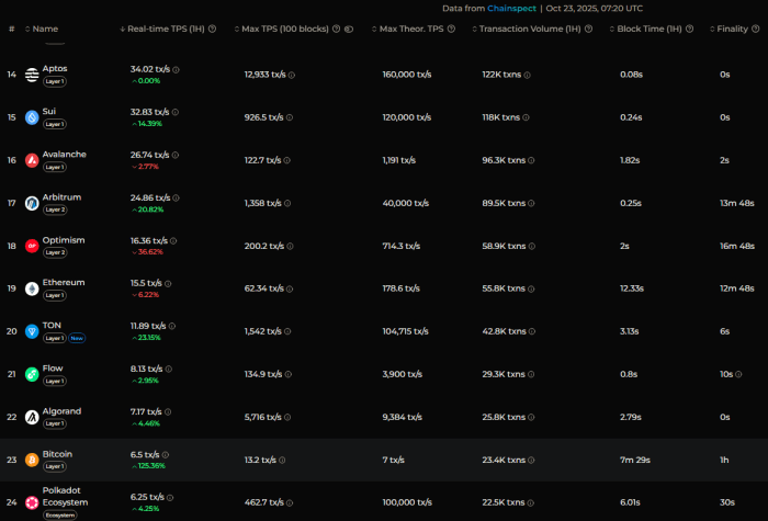 对于当前每秒仅能处理7笔交易(TPS)的比特币网络而言,这一变革堪称雪中送炭——这也正是比特币在区块链性能排行榜上仅位列第23名的根本原因。