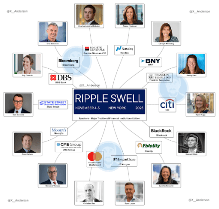 这是Swell八年历史中传统金融界参与度最高的一届。这些高管均具备资产管理、银行业务与资本市场的深厚机构经验——这些领域正在积极拥抱代币化、数字支付与区块链结算技术,而Ripple正致力于成为该领域的核心参与者。
