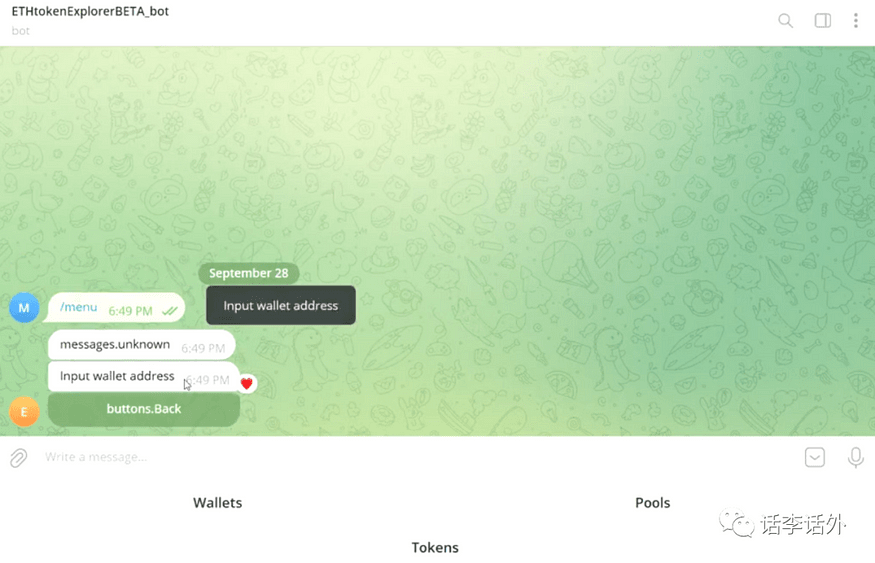 如果你想免费跟踪那些你认为值得追踪的加密钱包,那么你可以尝试使用 ETH Token Explorer,这是一款简洁的 Telegram Bot 工具,通过它你可以实时地受到所追踪钱包的任何交易情况。