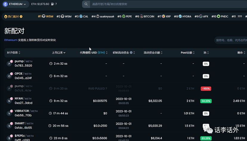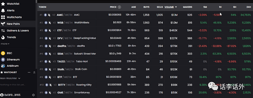 DEXTools 和上面提到的 DEXScreener 是同类型的工具,可以实时地展示出目前链上最近上线及正在交易的币种,也是发现和交易垃圾币的首选工具之一。