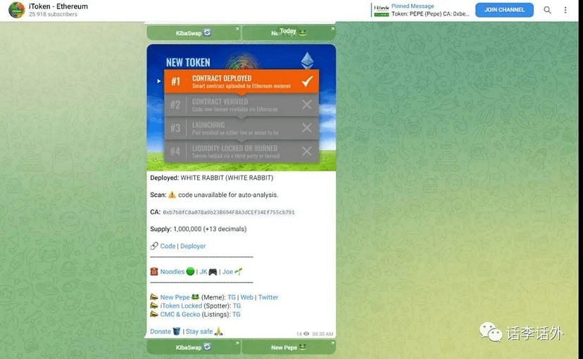 和本文开头提到的几个工具类似,iToken 也是一个 TG 工具,如果你想比别人更快更早地购买最新上线的货币对,那么 iToken 应该是一个不错的机器人,它可以向你展示新货币对的上线情况以及它们何时可能会放弃合约、锁定流动性、更改税收等。