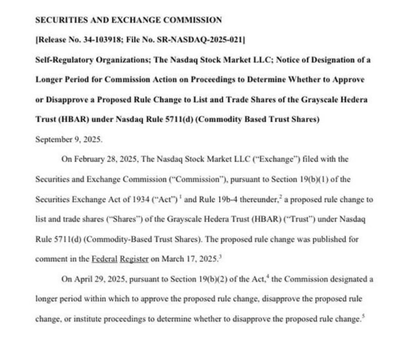 市场分析师ALLINCRYPTO在最新推文中透露,SEC正在审查灰度Hedera信托ETF,最终决定截止日期为11月12日。推文补充称,保罗·阿特金斯提出的新上市标准可能在ETF获批过程中起到关键作用。