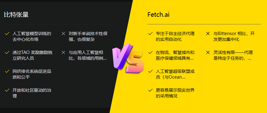 Bittensor 专注于创建一个去中心化的AI 模型训练市场。相较之下,Fetch.ai 使用自主经济代理(AEA) 来实现产业流程的自动化和优化。