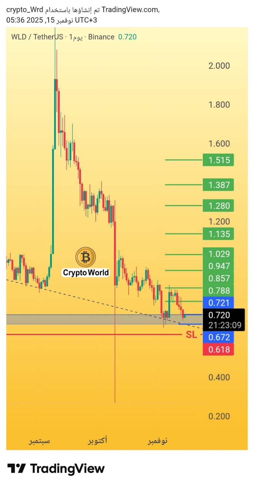 分析师Crypto World指出,该代币正处于明确的需求区间内交易,具备清晰的入场位、上行目标及止损标准——若日线收盘低于0.618水平则触发止损。图表显示价格徘徊在0.720附近,恰好位于长期下降趋势线支撑上方。