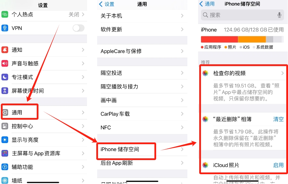 打开设备“设置”。选择“通用”选项。清理不必要的文件或应用,释放存储空间。