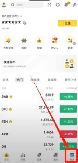 在欧易交易所的APP页面,点击右下角的【资产】,点击【充币】。币安那边是提币,欧易这边就是充币。提出去,充进来,互补操作。