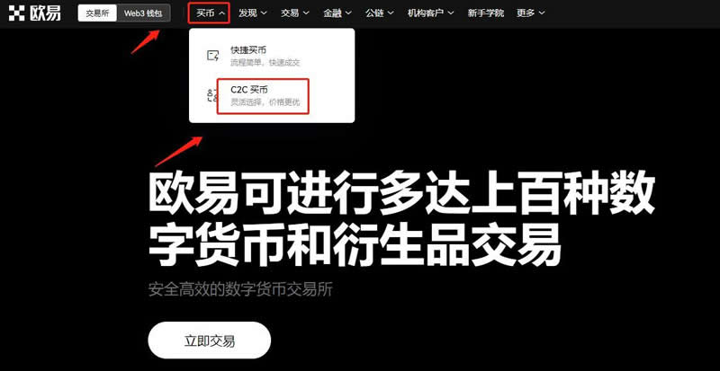 7、完成身份认证后即可进行交易,找到首页的“买币”--“C2C买币”