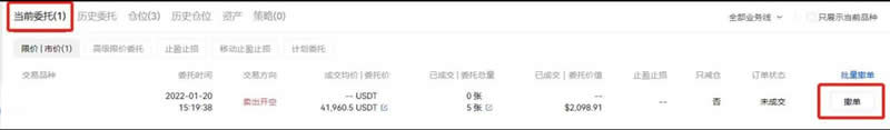 20、选择账户模式、委托类型,输入价格、数量,点击买入开多(看涨)或卖出开空(看空)。未成交的委托挂单可单击撤单撤销委托。此处以开空为例。