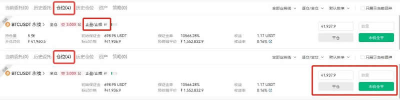 22、您可在持仓界面设置止盈止损,还可选择平仓,输入平仓价格和平仓数量确定平仓,或选择市价全平完成平仓操作。