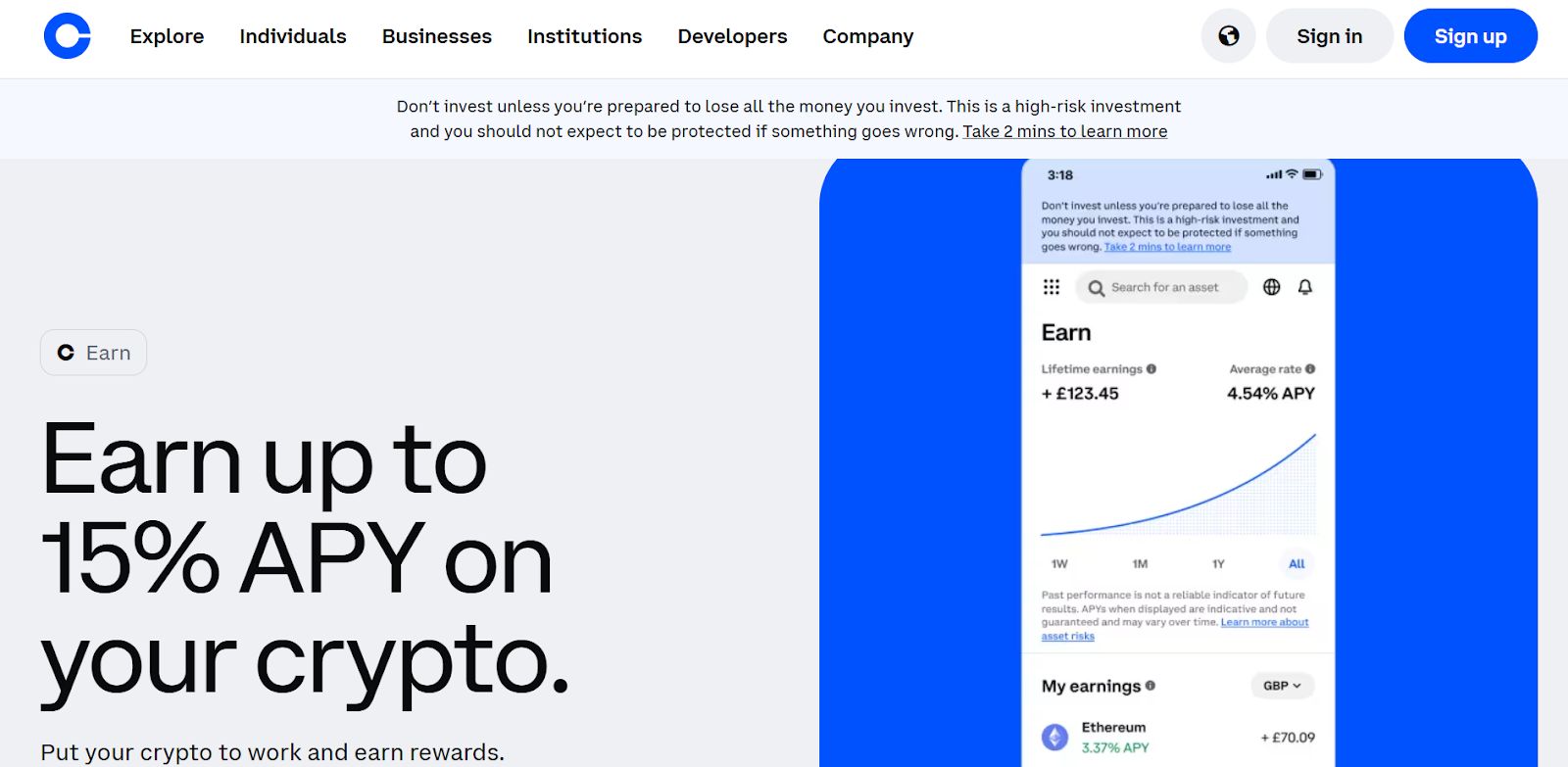 Coinbase 是加密货币领域值得信赖的品牌,以其透明且受监管的质押方式而闻名。如果您更看重简便性和安全性而非收益最大化,那么 Coinbase 无疑是您的理想之选。Coinbase 支持六种主流加密货币,确保用户拥有简单便捷的质押体验。作为一家安全可靠的交易所,Coinbase 的良好声誉更增添了一份信任,使其成为长期持有者的首选。