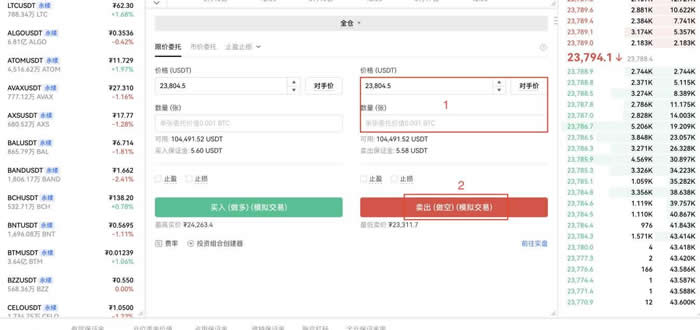 2、此处以BTC/USDT交易对的现货和合约模式来演示:在币币交易页面,买入相应数量的BTC;在永续合约交易页面卖出相应数量的BTC做空。