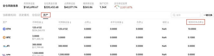 3、下单成功后,即可在交易页面下方的【仓位】和【资产】栏,即可在交易页面下方的【仓位】和【资产】栏,并观察保证金水平的降低(维持保证金、占用保证金)。