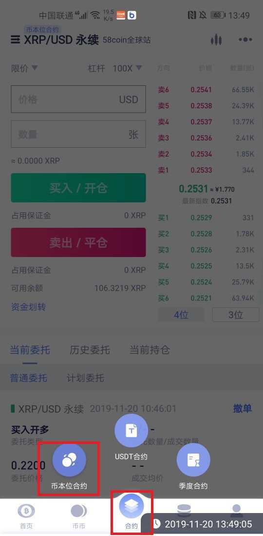 转账后,点击“合约-币本位合约”操作下单。