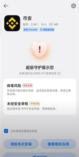 安卓特别注意:下载APK后检查来源,谨慎授权“未知来源”安装。