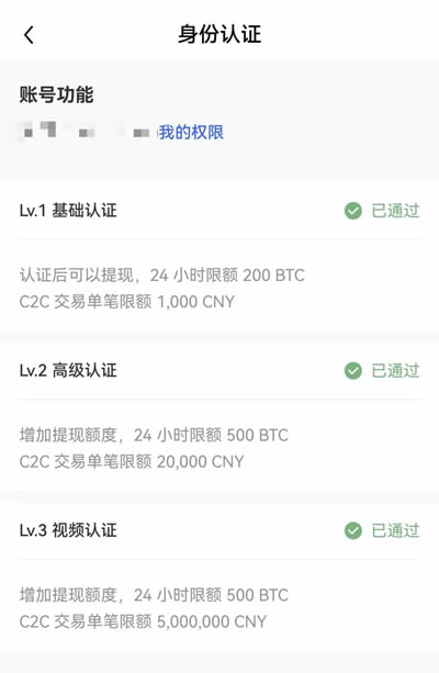 根据提示,按顺序完成【LV.1基础认证】、【LV.2高级认证】、【LV.3视频认证】。认证级别越高,在进行买/卖币交易时,更容易匹配到更优质的商家和更优惠的价格。