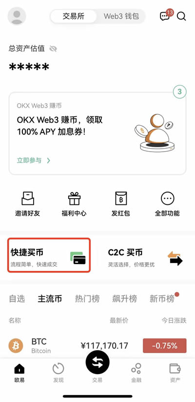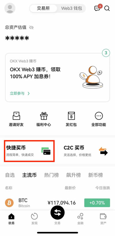 对于首次买币的新手用户,可以在欧易买/卖交易区【快捷区】进行一键买币,简单便捷,即刻就能拥有自己的数字资产。