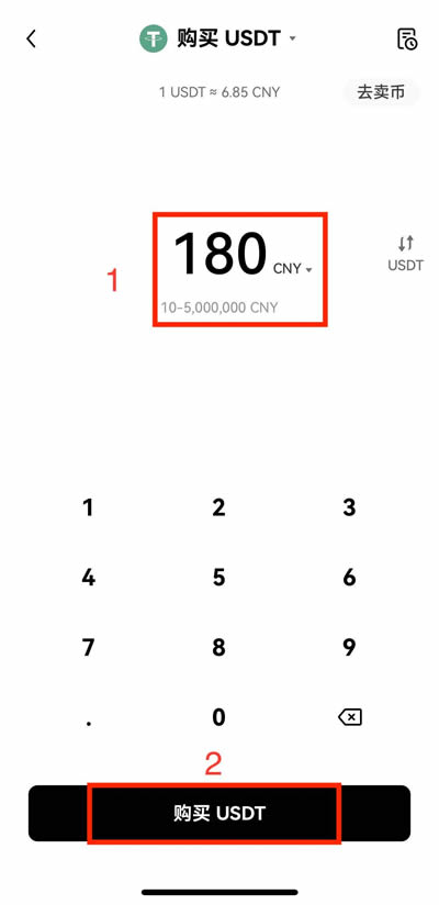 打开欧易App首页,点击【快捷买币】-输入【购买金额】或者要买的【币种数量】-【购买USDT】-选择支付方式-【确认购买】。