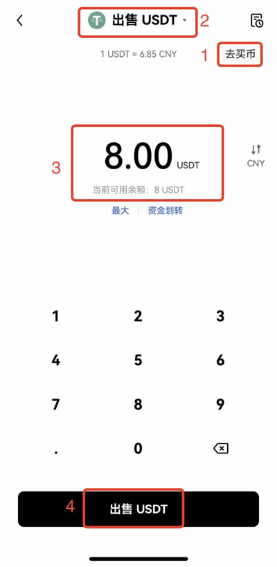 以USDT为例:打开欧易App首页,点击【买币】-【快捷买卖】-【出售】-输入【卖出数量】-【出售USDT】。