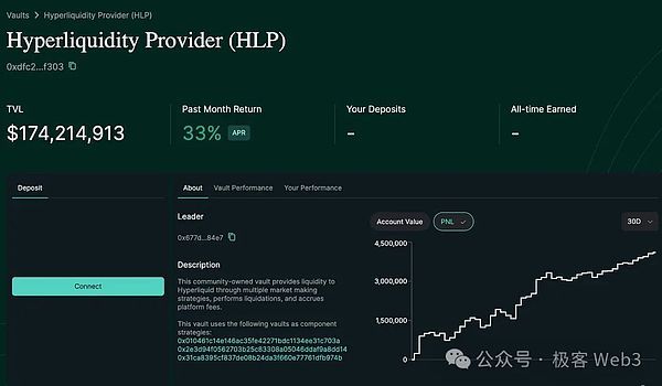 Arbitrum上的永续合约DEX--Hyperliquid是使用社区支持的活跃流动性金库的典型案例。HLP 金库是Hyperliquid的核心产品之一 ,利用社区用户的资金为Hyperliquid提供流动性。HLP金库通过整合Hyperliquid以及其他交易所的数据来计算公允价格,并在多种资产间执行有利可图的流动性策略。通过这些操作产生的收益和损失(P&L),将根据社区参与者在金库中的份额进行分配。