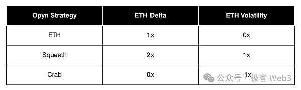 Opyn的永续合约产品包括Stable Perps (0-perps)、Uniswap LP Perps (0.5-perps)、Normal Perps (1-perps) 和 Squared Perps (2-perps,也称为 Squeeth)四种。每种合约产品都有其特定的用途: