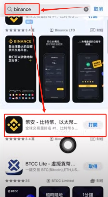 搜索处搜索“binance”找到第二个币安进行下载