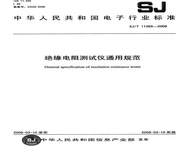 SJ/T 11385-2008 绝缘电阻测试仪通用规范 SJ/T11385-2008