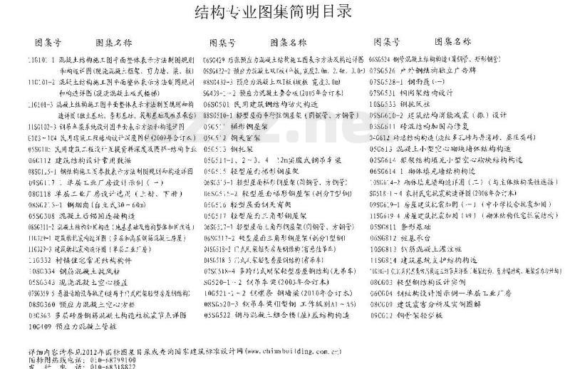 65517-2轻型屋面三角形钢星架(部分1型钢D4SG513-门式架轻型易星钢媒构(有悬扯弟车)D4S(5183式x,东轻型另屋结柏[有吊车】7SL51-4多跨门式刚架轻型房屋钢结构(无吊车)SG520-1·2节车(2003.年-订本)[0521-2条钢墙梁(2011年合订本)8SG520-3钱吊车资(I[型钢工作级别A1~15)5SG522钢与混凝二红合楼(屋)彭结构构造评详细内容清参贝2012-年国标图集目录或查询科家建筑标准设计网(iwiww.cthinabuilding.com.ar)国标图热线电话::1-6879910