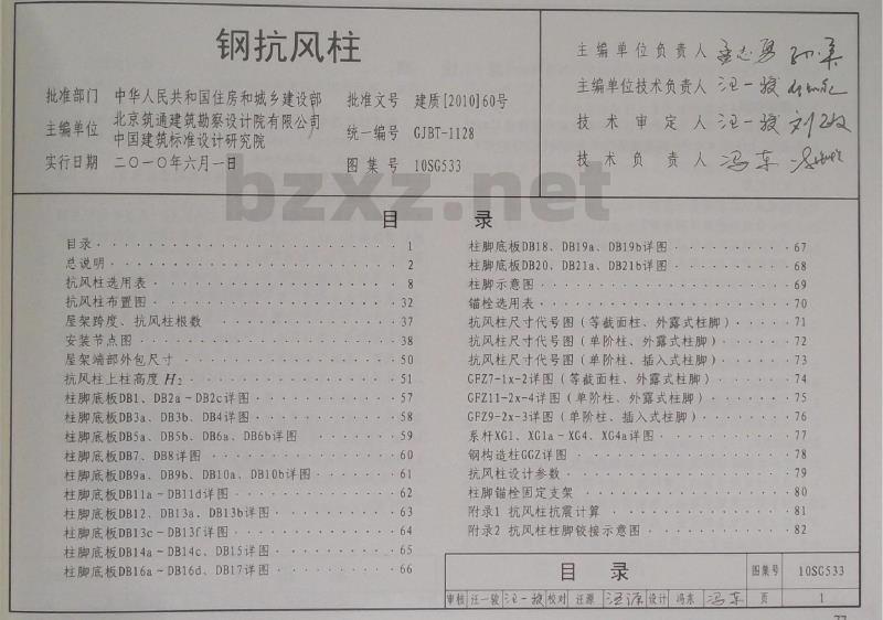 柱脚底板DB14a~DB14c、DB15详图柱脚底板DB16a~DB16d、DB17详图批准文号建质【2010]60号