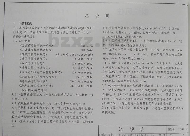 2.1本图集的山墙抗风柱为由三块钢板焊成的工字形截面,钢材为Q235-B。