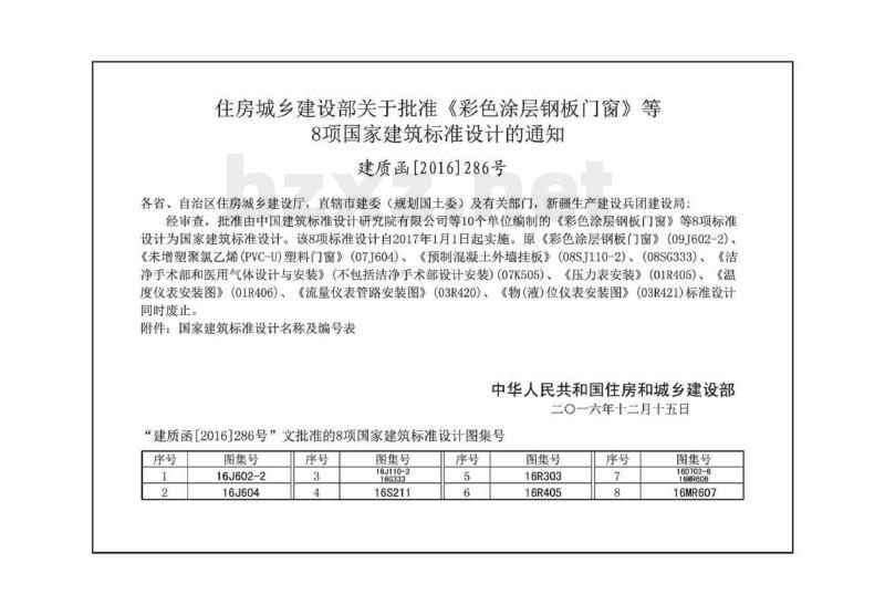 “建质函【2016]286号”文批准的8项国家建筑标准设计图集号序号