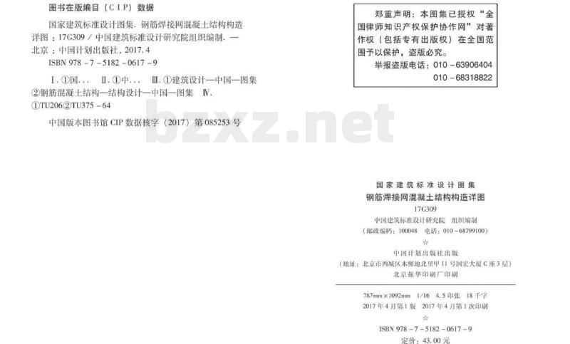 国家建筑标准设计图集,钢筋焊接网混凝土结构构造详图:17C309/中国建筑标准设计研究院组织编制.-北京:中国计划出版社,2017.4ISBN978-7-5182-0617-9