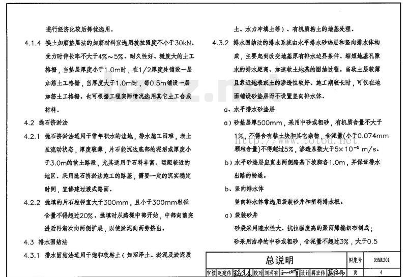 4.1.3采用换土垫层法或换土加筋垫层法处理软基时,垫层厚度一般不小于0.50m且不超过3.0m,并应与其它处理方法总说明