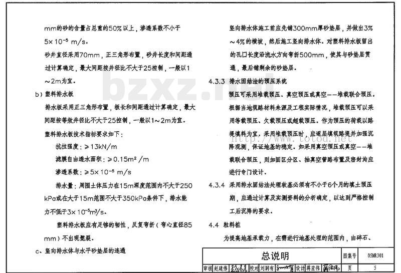 砂袋采用透水性大、抗拉强度高的聚丙烯编织布制成;砂采用洁净的中砂或粗砂,含泥量不超过3%,大于0.5总说明