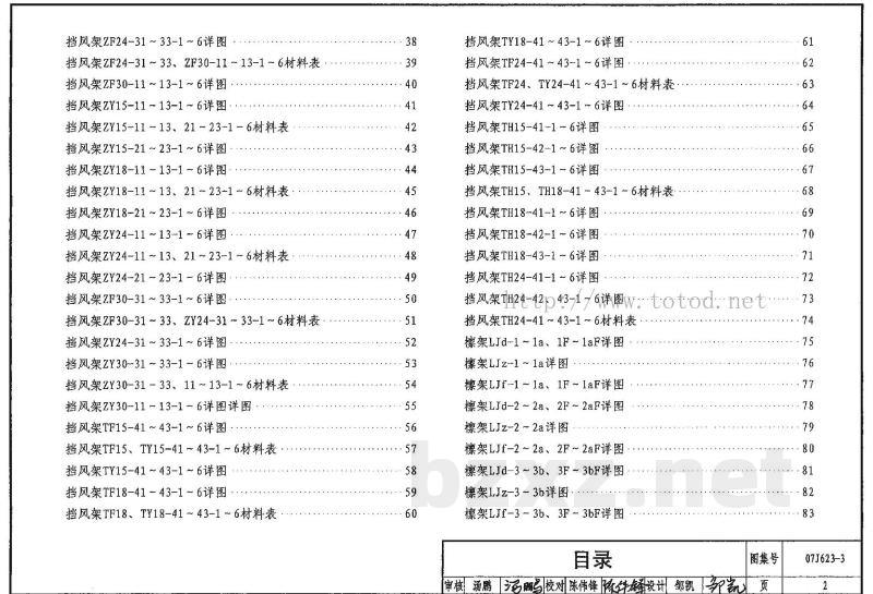 挡风架ZY30-31-33、11~13-1~6材料表挡风架ZY30-11~13-1~6详图详图挡风架TF15-41~43-1~6详图