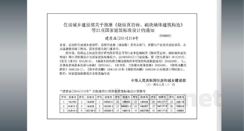 “建质函[2014]210号”文批准的21项国家建筑标准设计图集号序号丨图集号