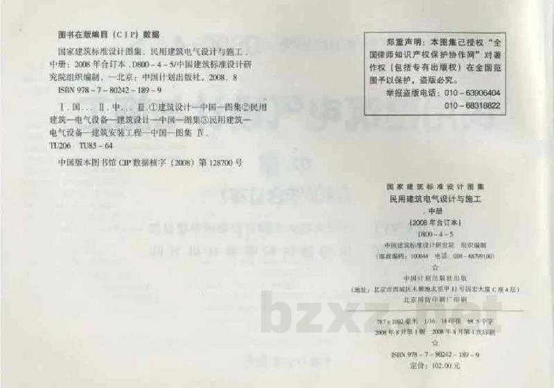 国家建筑标准设计图集:民用建筑电气设计与施中册车2008年合订本.D8004-5/中国建筑标准设计研充院组织编制,一北京:中国计划出版社,2008,8ISBN978-7-80242-189-9