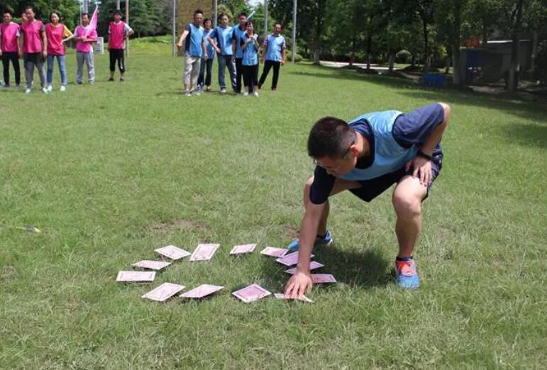 游戏步骤:1、将学员分成若干组,每组学员5名-8名左右,并选派每组一名组员出来担任监督员;2、所有参赛的组员排纵列排好,队列的最后一人到培训师处,培训师向全体参赛学员和监督员宣布游戏规则3、游戏规则:1)各队代表到主席台来,培训师:“我将给你们看一个数字,你们必须把这个数字通过姿体语言让你全部的队员都知道,并且让小组的第一个队员将这个数字写到讲台前的白纸上(写上组名),看哪个队伍速度最快,最准确;”2)全过程不允许说话,后面一个队员只能够通过姿体语言向前一个队员进行表达,通过这样的传递方式层层传递,直到第一个队员将这个数字写在白纸上;3)比赛进行三局(数字分别是0、900、0.01),每局休息1分15秒。第一局胜利积5分,第二局胜利积8分,第三局胜利积10分。